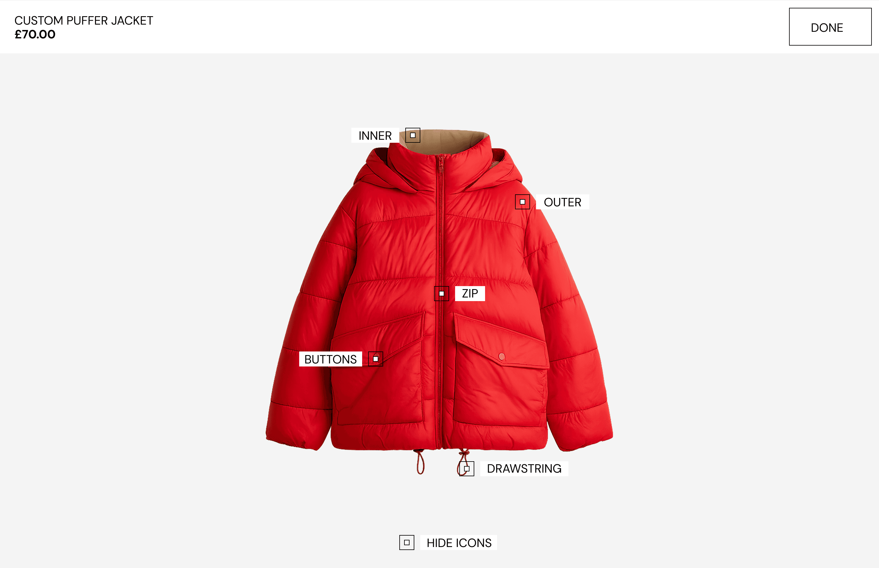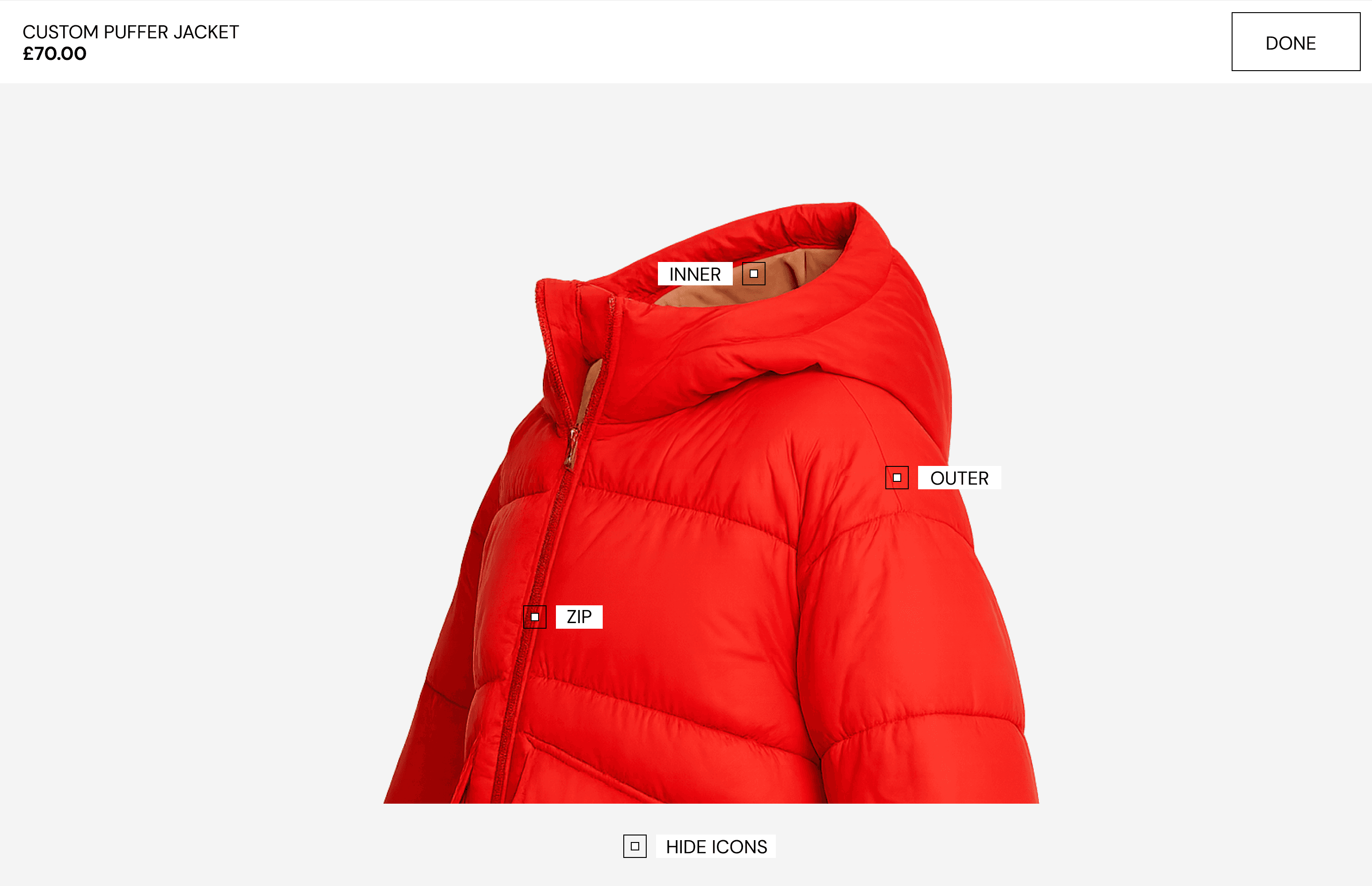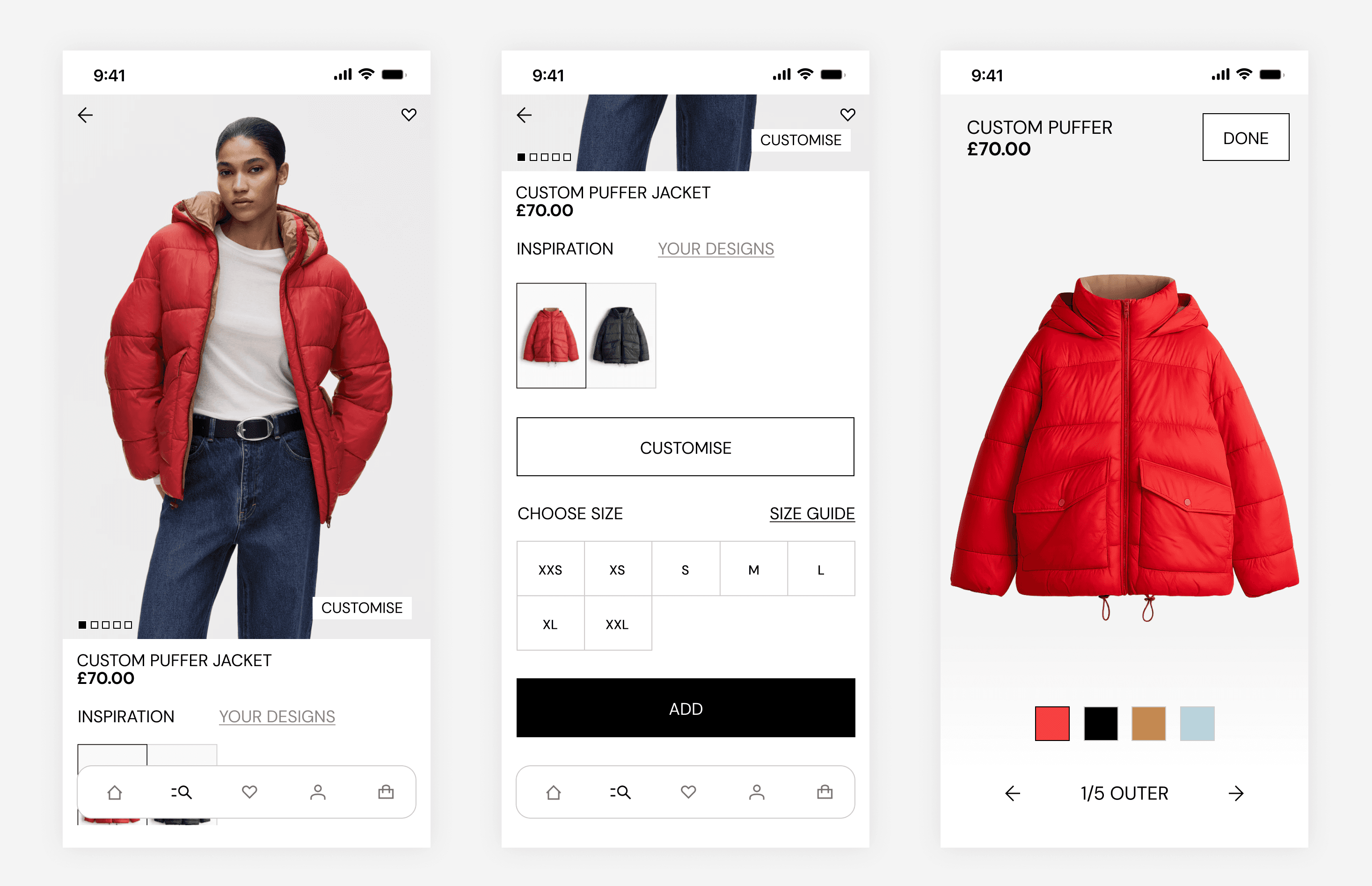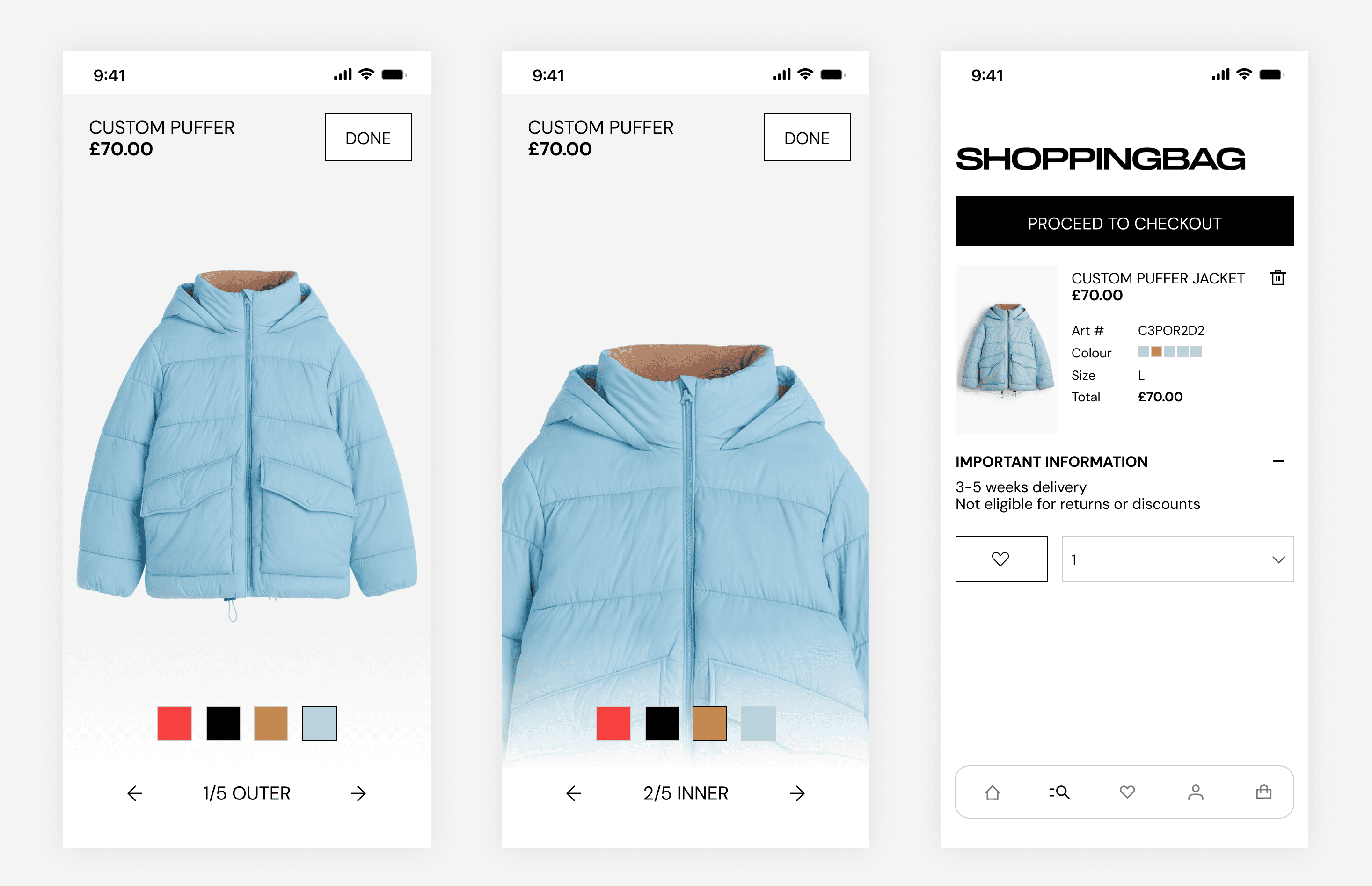 I chose to dynamically update product imagery based on the selected outer colour, balancing customer confidence with production constraints.